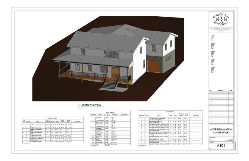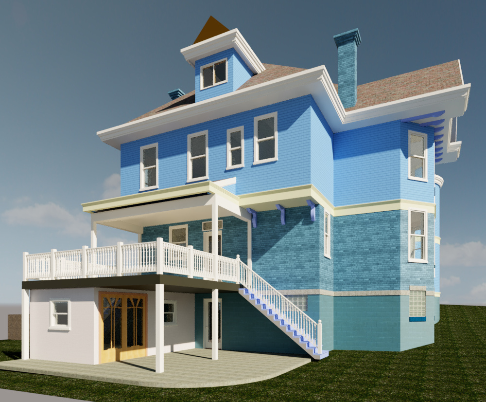 Home addition using Revit software. Second floor, front porch and new roof design.