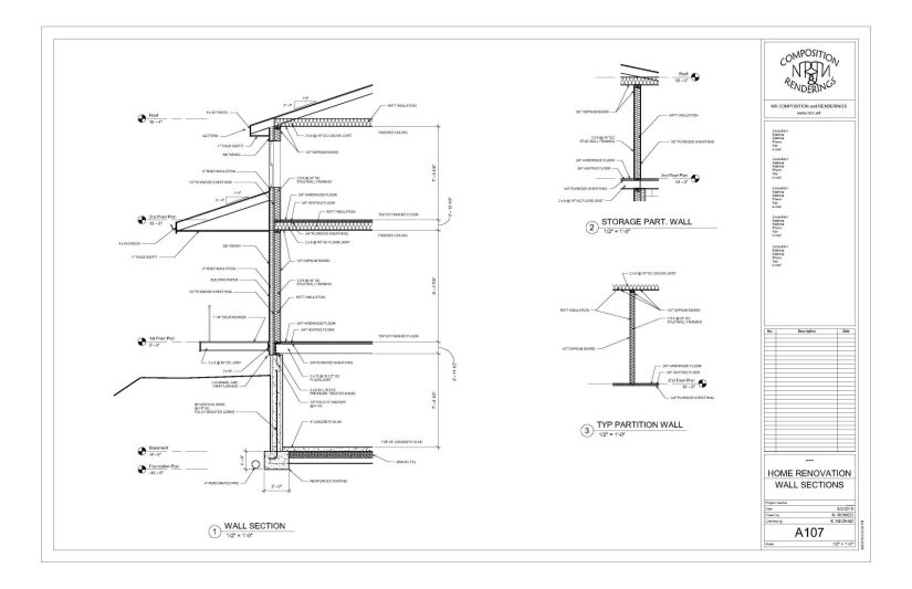 Home renovation consisting of the existing electrical and floor plans along with a wall section.