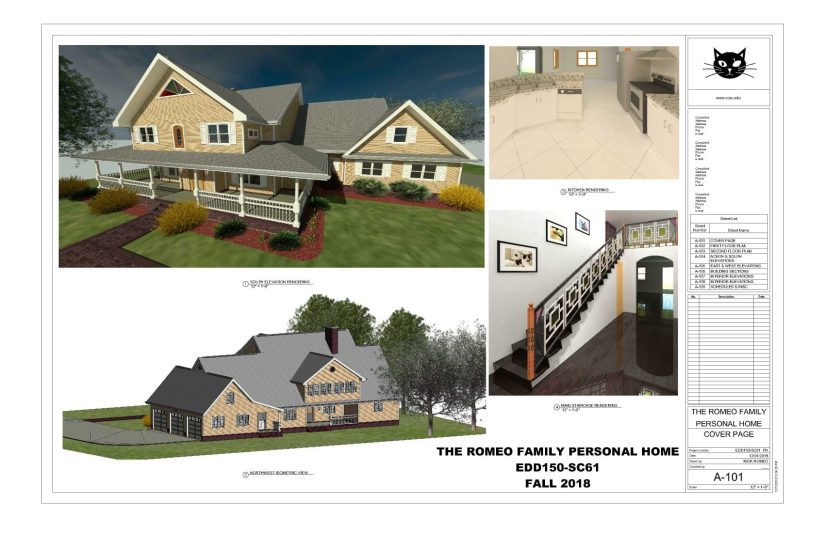 This project was drawn based on existing conditions, and is intended for layout and documentation purposes. Created roof finishes for the entire home (wallpaper, paint flooring, etc). All of the pictures on the walls contain images of my photography/artworks.