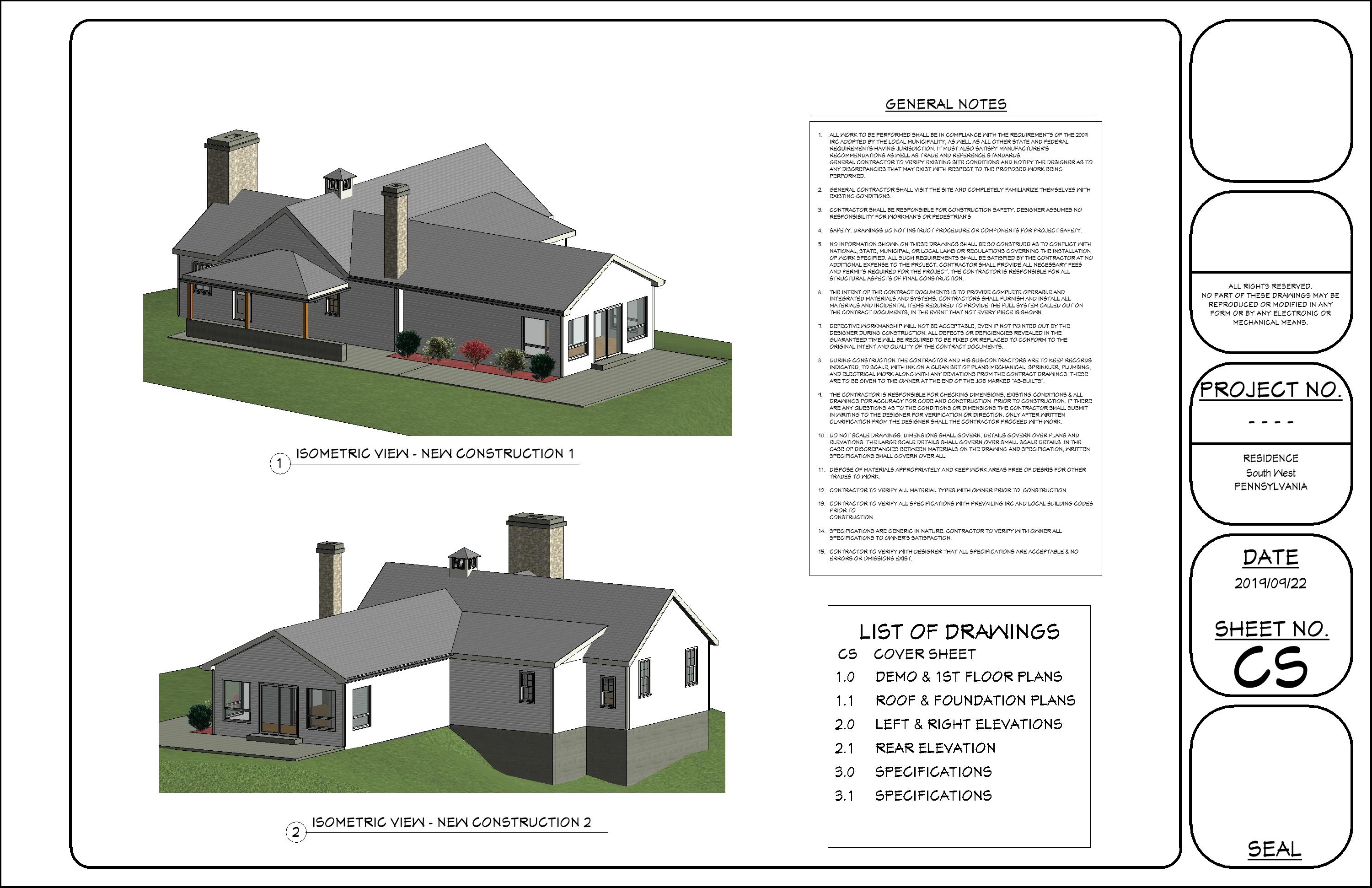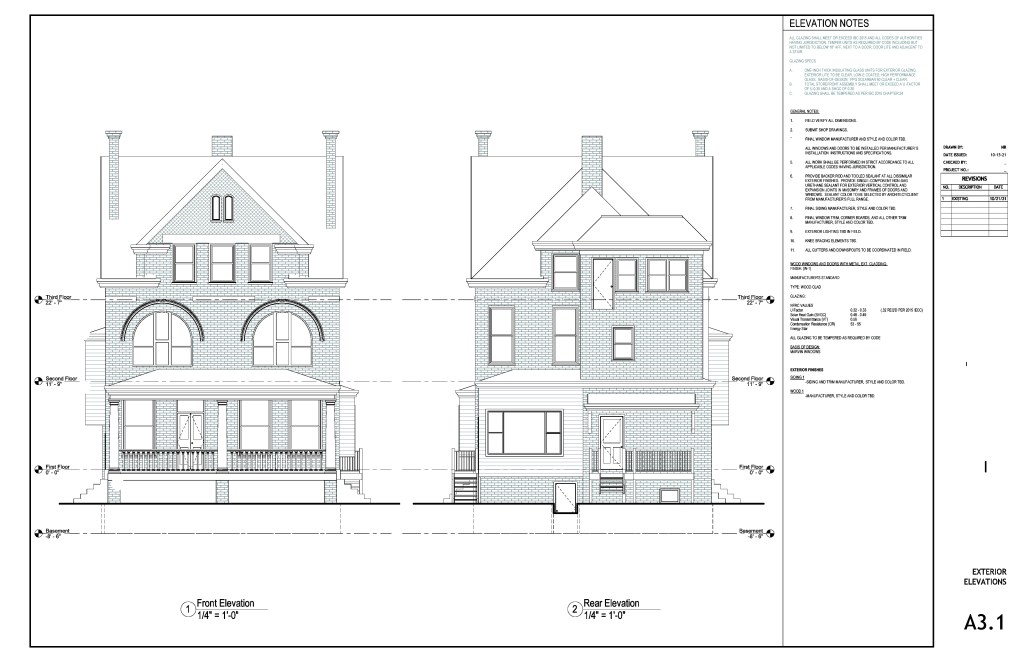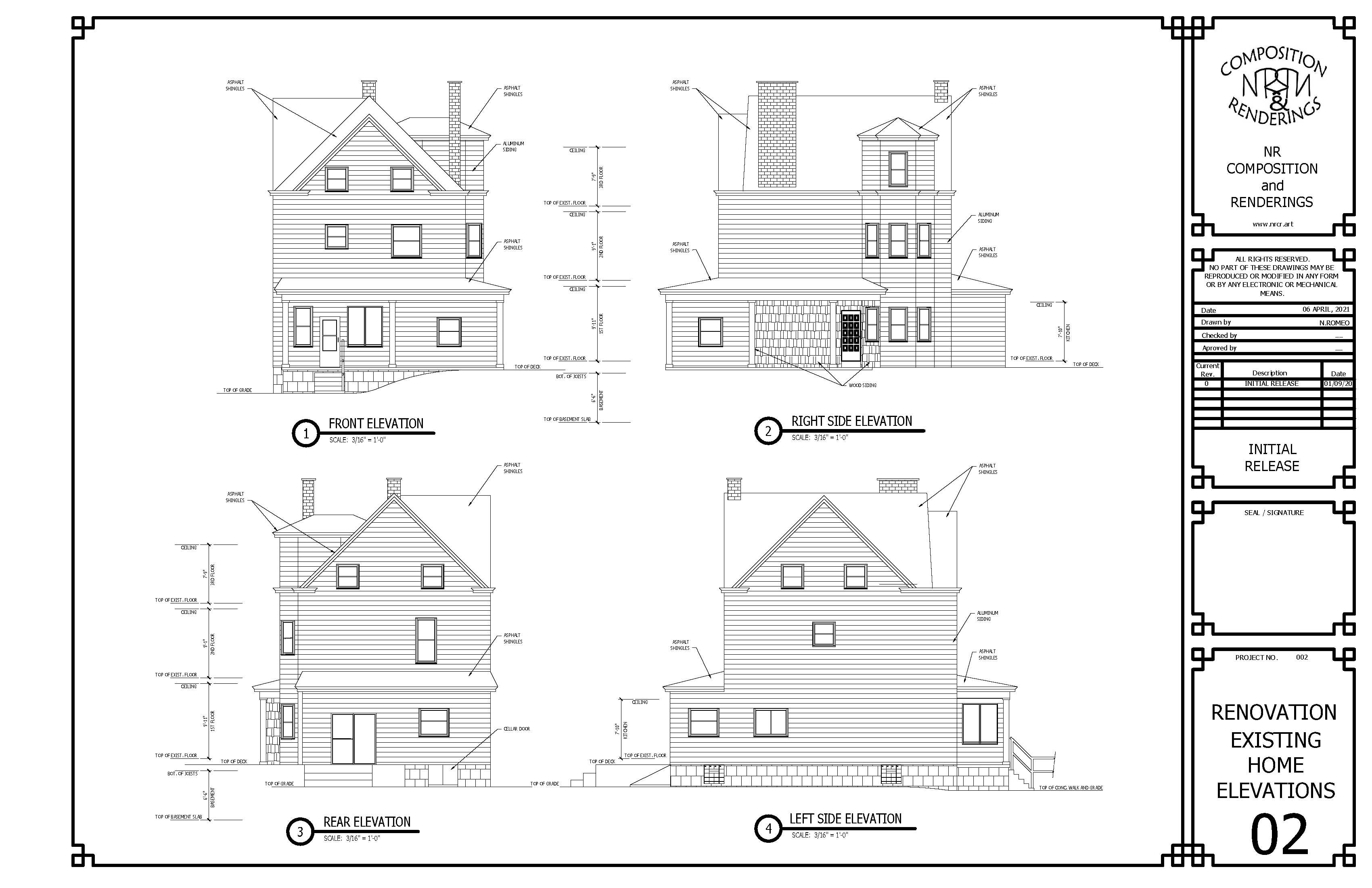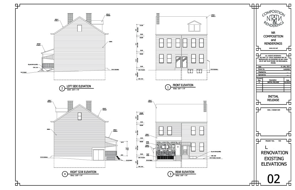 Existing condition survey of home for a home renovation. The drawings were created using Revit R22.