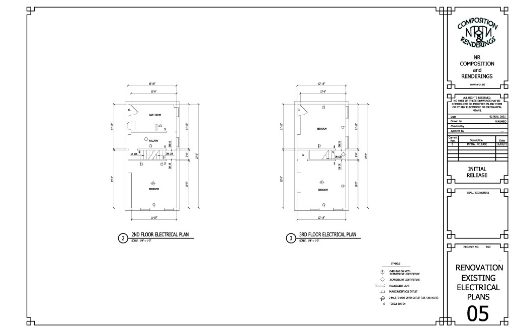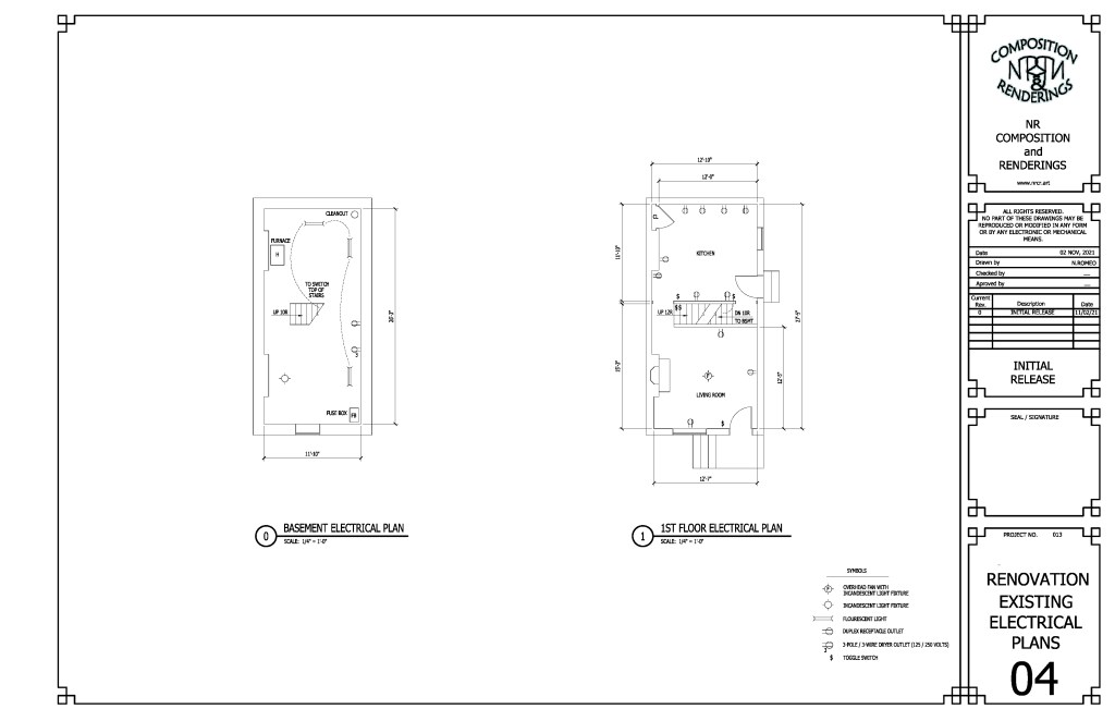 Home renovation containing the existing electrical and floor plans along with the demo and proposed renovation upgrades.
