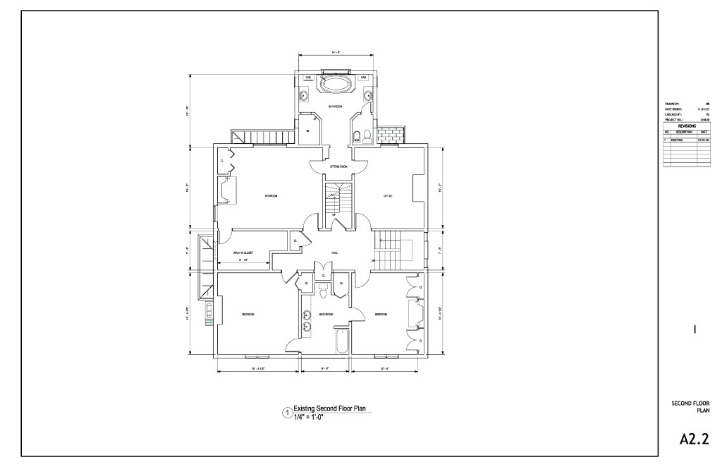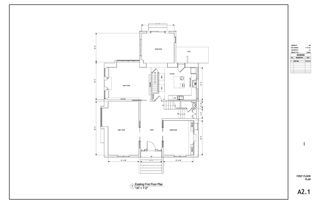 Existing condition survey was completed of the entire home. The drawings were then created by use of Revit R22.